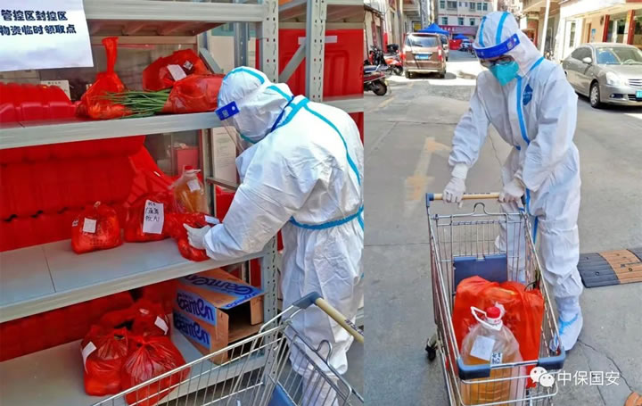 為了做好封控區(qū)、管控區(qū)、防范區(qū)居民的生活保障和應(yīng)急處理工作,中保國安集團(tuán)在每一個(gè)所負(fù)責(zé)的社區(qū)成立了生活保障服務(wù)組、應(yīng)急處理工作組,快速響應(yīng)居民需求,協(xié)助處理緊急情況,關(guān)愛幫扶特殊群體,分揀快遞和外賣……哪里有需要,我們就出現(xiàn)在哪里,急人所急,守望相助,并肩抗疫。